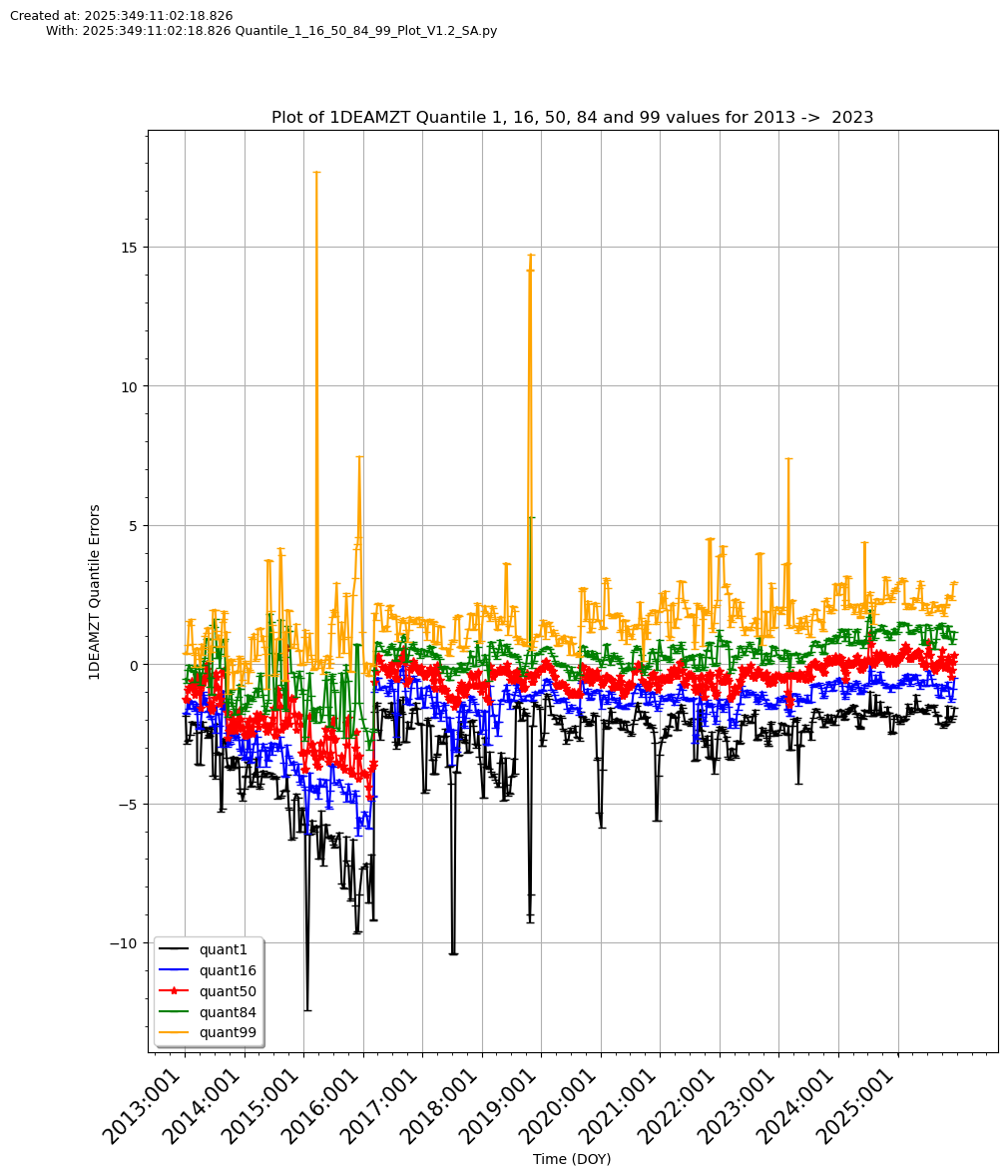 These two plots illustrate the 1%, 16%, 50% and 84% and 99% error histories starting at day 1 of year 2013 and extending to Now (as of the last update).