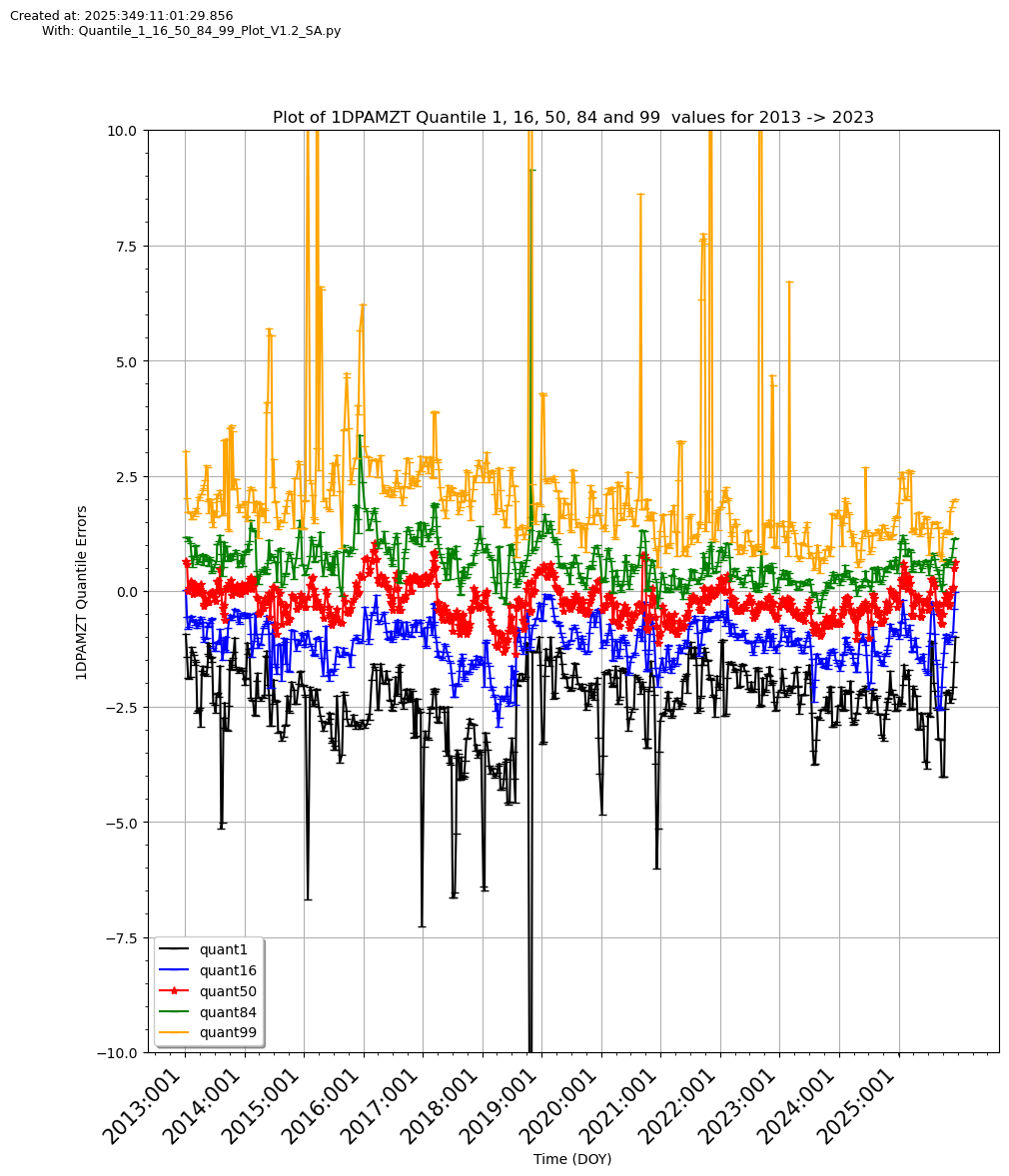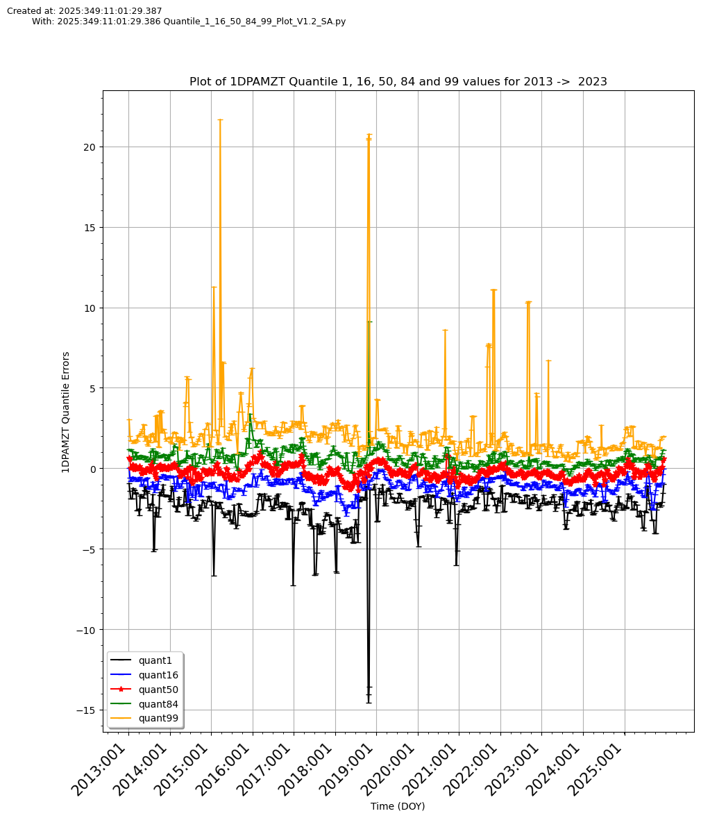 These two plots illustrate the 1%, 16%, 50% and 84% and 99% error histories