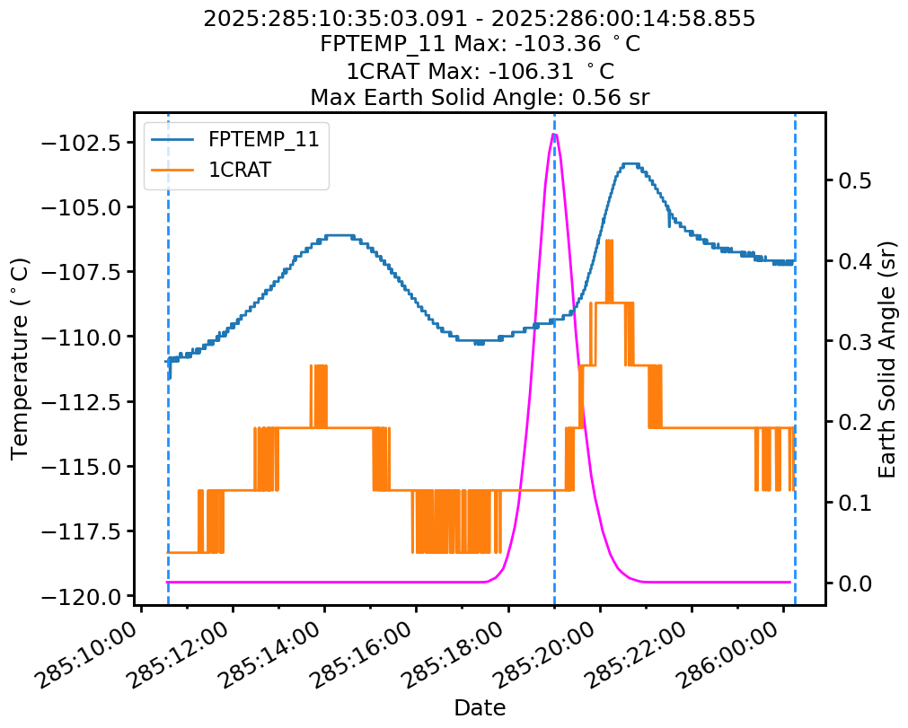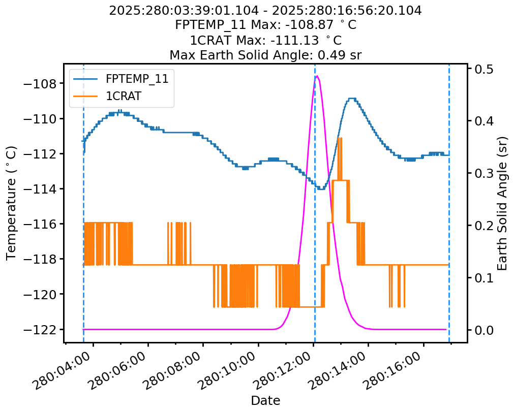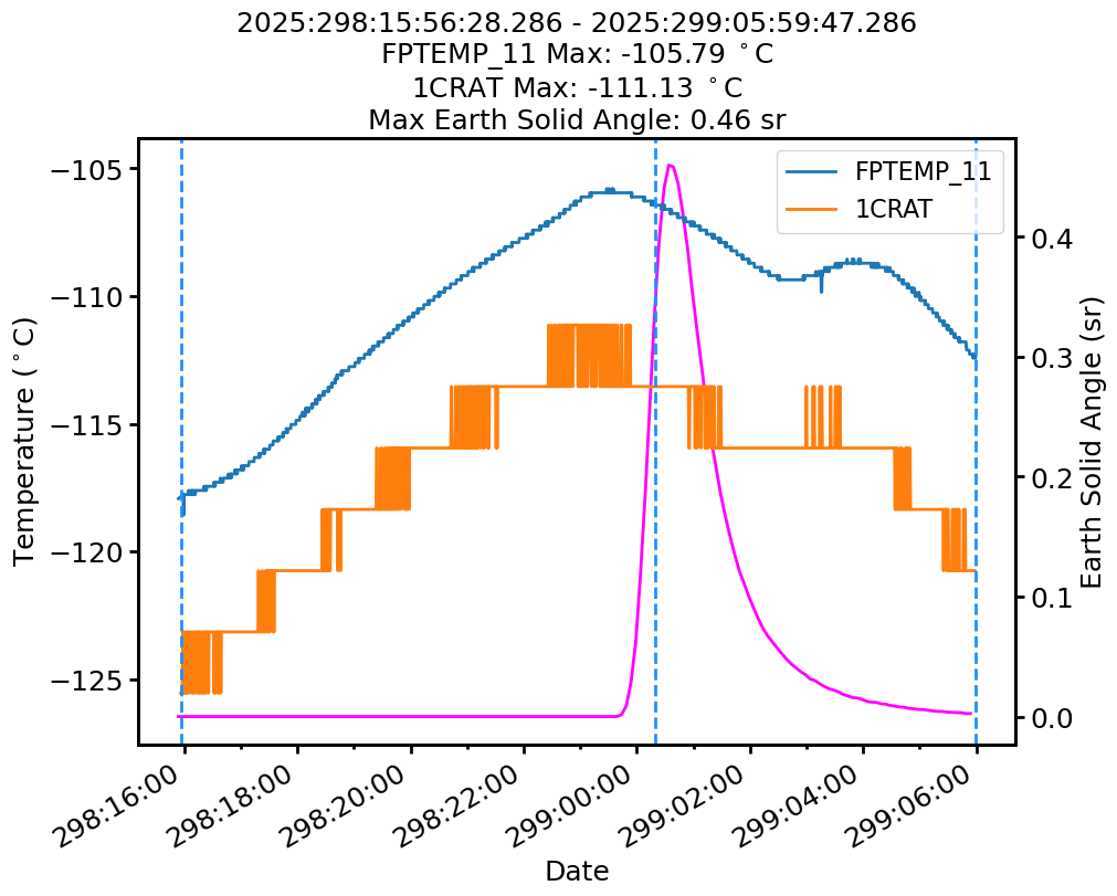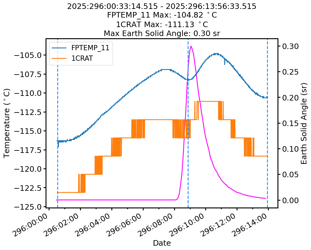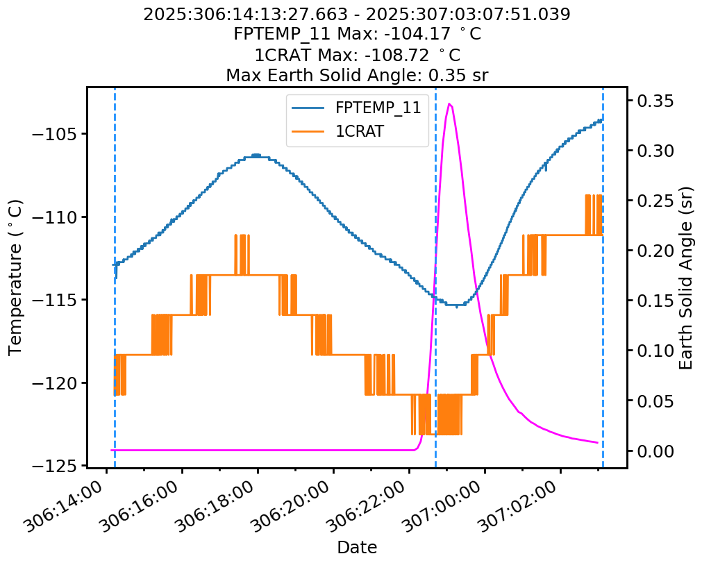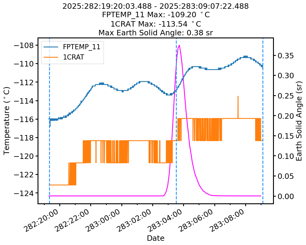 | Date | FPTEMP Max (°C) | 1CRAT Max (°C) |