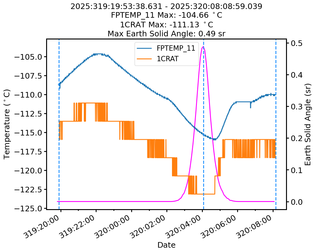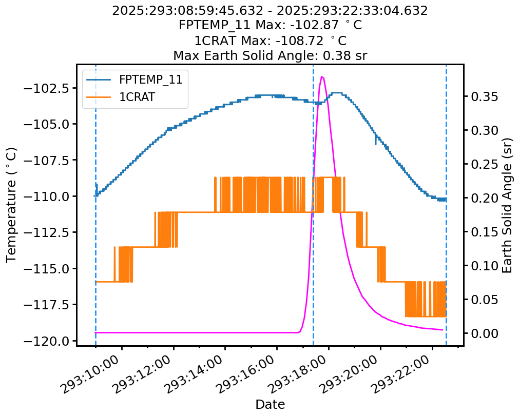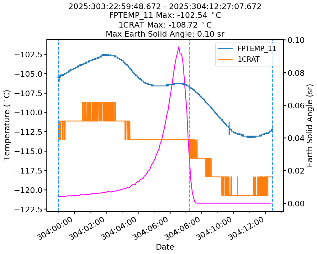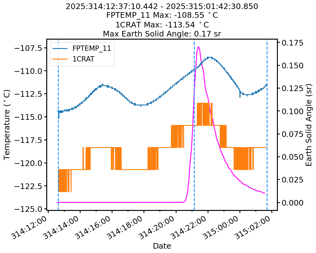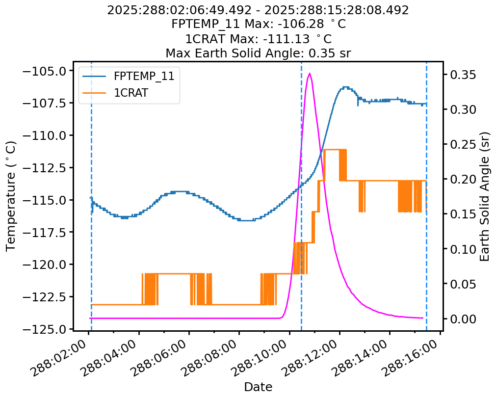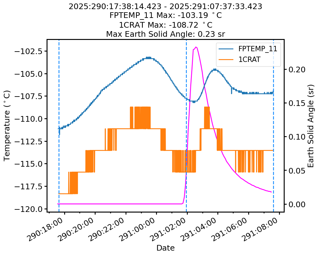 | Date | FPTEMP Max (°C) | 1CRAT Max (°C) |