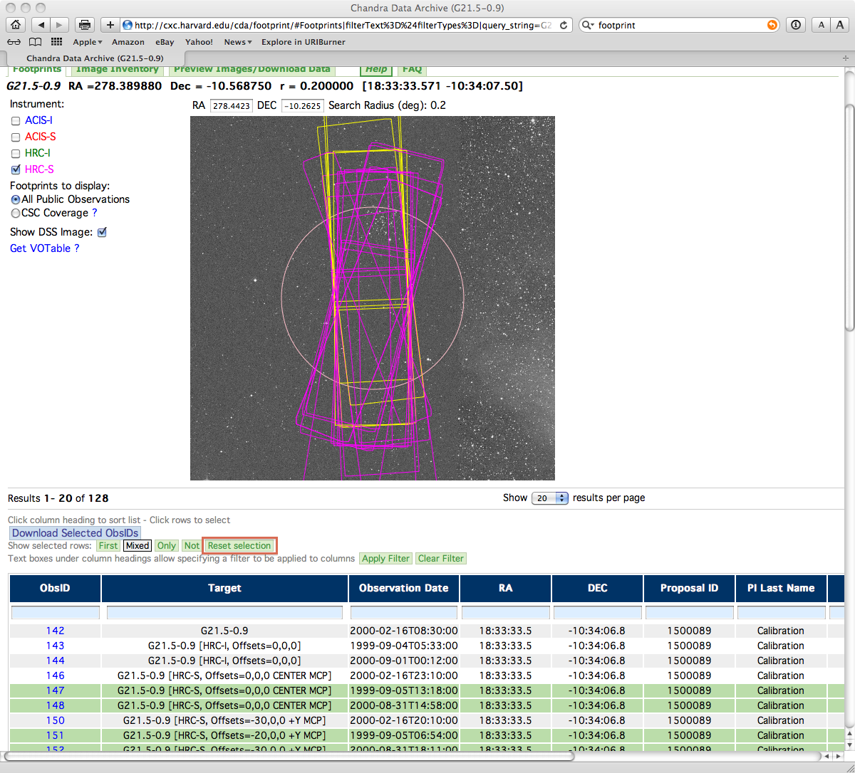 Figure 10: Filtering the results with the Chandra Footprint Service