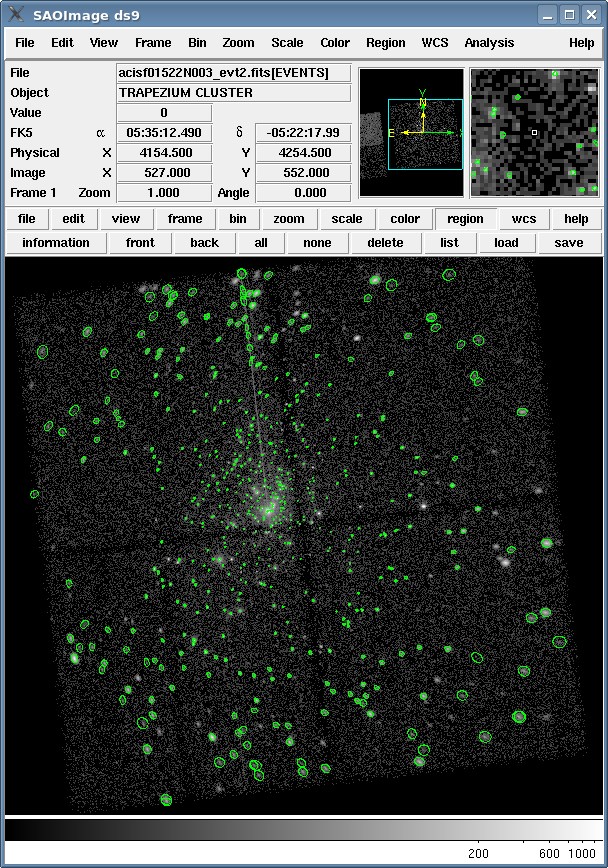 Load the source list from either file (Region → Load Regions... → acisf02254_src.fits OR acisf02254_src.reg). The detections are shown in Figure 2.