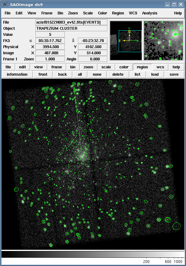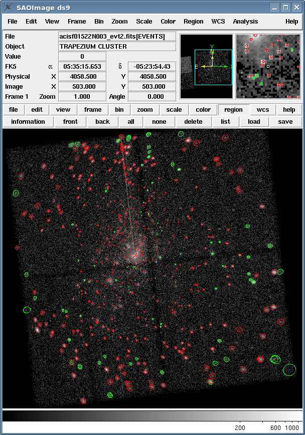 Load the source list from either file (Region → Load Regions... → acisi_block_src.fits OR acisi_block_src.reg). The detections are shown in Figure 4.