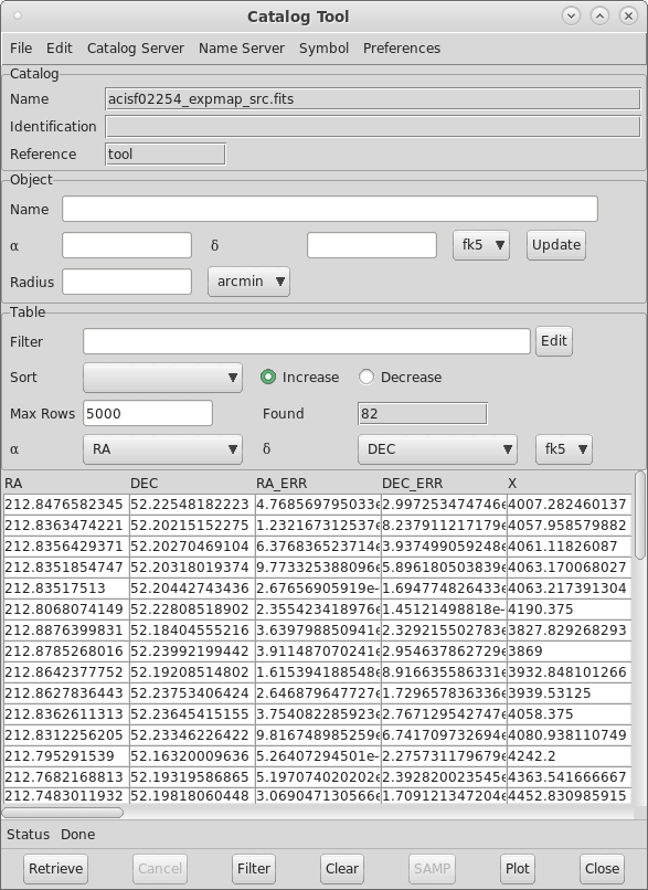 Figure 7: ds9 Catalog Tool