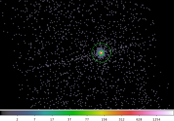 Background has been ignored in this example due to the brightness of the source and the small region size.