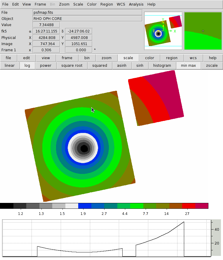 It is important here to note that we chose units=logical. This tells mkpsfmap to compute the size of the PSF in unit of pixel as the image is currently binned (in this example by 2).
