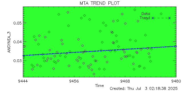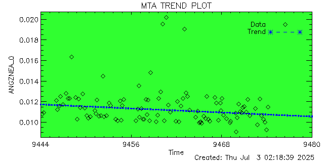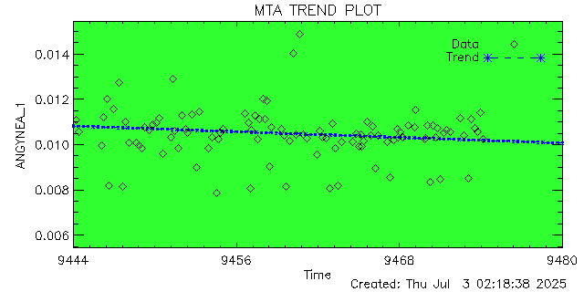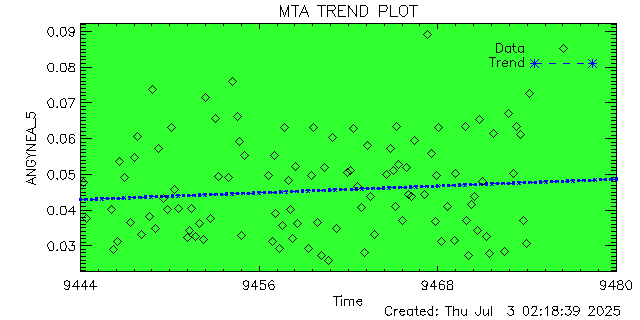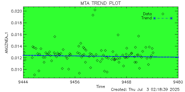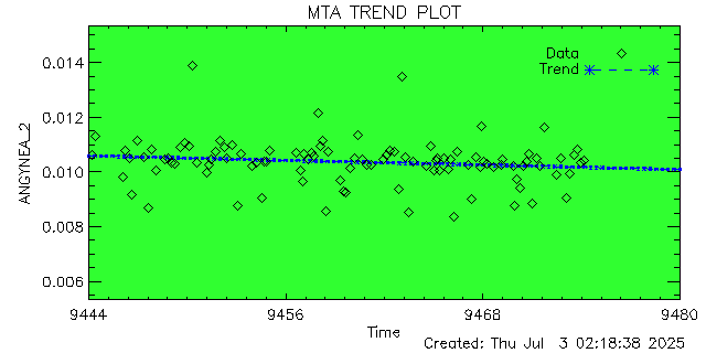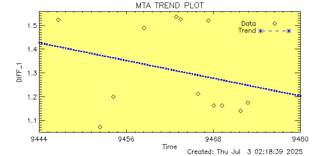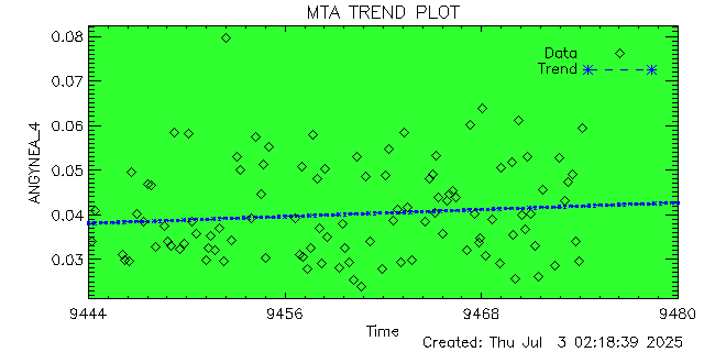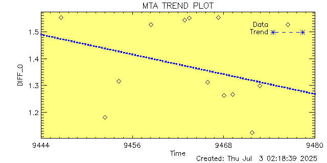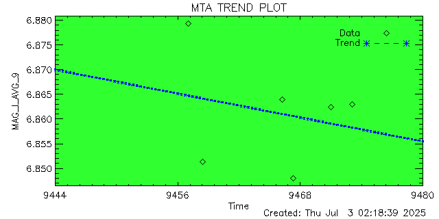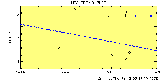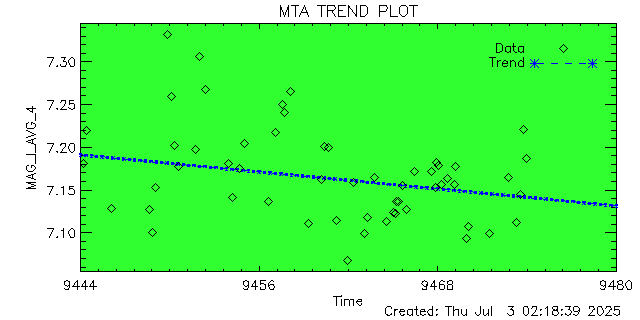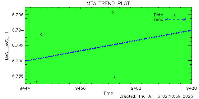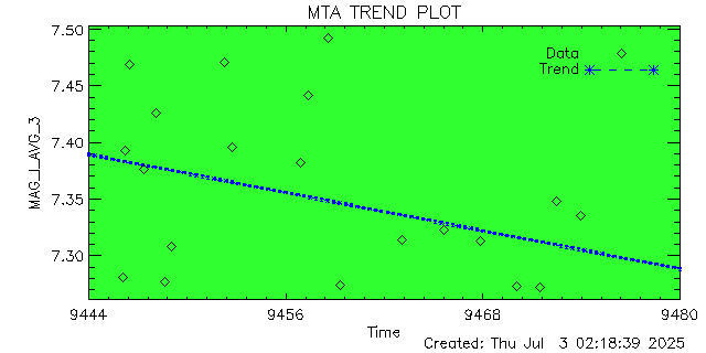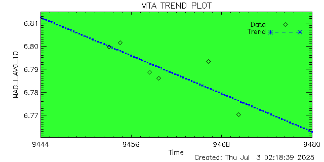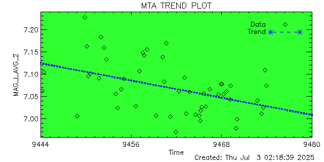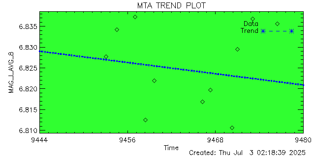 ID | ID String | Magnitude | Data Quality (%) | Total Data | Average | Min | Max | Good | Marginal | Bad | 1 | ACIS-1 | 7.210 | 6.514 | 7.375 | 100 | 0 | 0 | 33 | 2 | ACIS-2 | 7.070 | 6.123 | 7.248 | 100 | 0 | 0 | 52 | 3 | ACIS-3 | 7.358 | 6.293 | 7.523 | 100 | 0 | 0 | 20 | 4 | ACIS-4 | 7.168 | 6.798 | 7.360 | 100 | 0 | 0 | 56 | 5 | ACIS-5 | 7.186 | 6.771 | 7.374 | 100 | 0 | 0 | 80 | 6 | ACIS-6 | 7.236 | 6.342 | 7.476 | 100 | 0 | 0 | 35 | 7 | HRC-I-1 | 6.798 | 6.569 | 6.835 | 100 | 0 | 0 | 8 | 8 | HRC-I-2 | 6.825 | 6.739 | 6.862 | 100 | 0 | 0 | 10 | 9 | HRC-I-3 | 6.861 | 6.807 | 6.893 | 100 | 0 | 0 | 6 | 10 | HRC-I-4 | 6.790 | 6.704 | 6.830 | 100 | 0 | 0 | 6 | 11 | HRC-S-1 | 6.791 | 6.725 | 6.816 | 100 | 0 | 0 | 4 | 12 | HRC-S-2 | 6.812 | 6.777 | 6.843 | 100 | 0 | 0 | 4 | 13 | HRC-S-3 | 6.847 | 6.684 | 6.876 | 100 | 0 | 0 | 4 | 14 | HRC-S-4 | 0.000 | 0.000 | 0.000 | 0 | 0 | 0 | 0 |