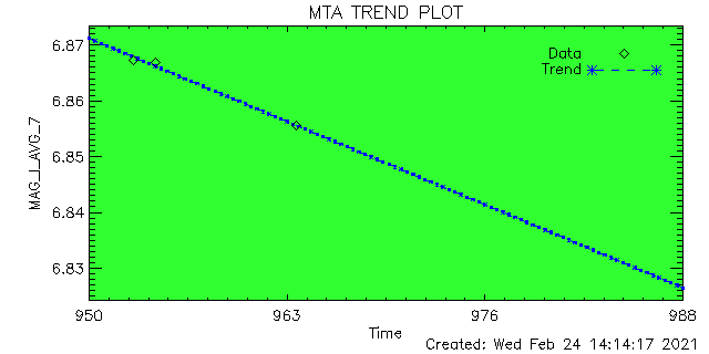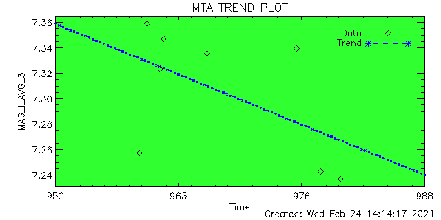 ID | ID String | Magnitude | Data Quality (%) | Total Data | Average | Min | Max | Good | Marginal | Bad | 1 | ACIS-1 | 7.111 | 6.476 | 7.187 | 100 | 0 | 0 | 16 | 2 | ACIS-2 | 7.005 | 5.865 | 7.081 | 100 | 0 | 0 | 47 | 3 | ACIS-3 | 7.305 | 6.690 | 7.609 | 100 | 0 | 0 | 8 | 4 | ACIS-4 | 7.091 | 6.222 | 7.357 | 100 | 0 | 0 | 50 | 5 | ACIS-5 | 7.129 | 6.450 | 7.464 | 100 | 0 | 0 | 66 | 6 | ACIS-6 | 7.176 | 6.026 | 7.483 | 100 | 0 | 0 | 20 | 7 | HRC-I-1 | 6.863 | 6.682 | 6.890 | 100 | 0 | 0 | 3 | 8 | HRC-I-2 | 6.903 | 6.457 | 6.924 | 100 | 0 | 0 | 3 | 9 | HRC-I-3 | 6.955 | 6.737 | 6.980 | 100 | 0 | 0 | 3 | 10 | HRC-I-4 | 0.000 | 0.000 | 0.000 | 0 | 0 | 0 | 0 | 11 | HRC-S-1 | 6.861 | 6.266 | 6.873 | 100 | 0 | 0 | 1 | 12 | HRC-S-2 | 6.875 | 6.730 | 6.974 | 100 | 0 | 0 | 1 | 13 | HRC-S-3 | 6.900 | 6.850 | 6.913 | 100 | 0 | 0 | 1 | 14 | HRC-S-4 | 0.000 | 0.000 | 0.000 | 0 | 0 | 0 | 0 |