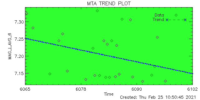 ID | ID String | Magnitude | Data Quality (%) | Total Data | Average | Min | Max | Good | Marginal | Bad | 1 | ACIS-1 | 7.130 | 5.607 | 7.202 | 100 | 0 | 0 | 34 | 2 | ACIS-2 | 7.018 | 5.502 | 7.132 | 100 | 0 | 0 | 36 | 3 | ACIS-3 | 0.000 | 0.000 | 0.000 | 0 | 0 | 0 | 0 | 4 | ACIS-4 | 7.112 | 6.725 | 7.507 | 100 | 0 | 0 | 50 | 5 | ACIS-5 | 7.136 | 6.333 | 7.620 | 100 | 0 | 0 | 60 | 6 | ACIS-6 | 7.203 | 5.412 | 7.523 | 100 | 0 | 0 | 27 | 7 | HRC-I-1 | 6.897 | 6.786 | 6.916 | 100 | 0 | 0 | 2 | 8 | HRC-I-2 | 6.931 | 6.769 | 6.959 | 100 | 0 | 0 | 2 | 9 | HRC-I-3 | 7.000 | 6.941 | 7.037 | 100 | 0 | 0 | 2 | 10 | HRC-I-4 | 0.000 | 0.000 | 0.000 | 0 | 0 | 0 | 0 | 11 | HRC-S-1 | 6.911 | 6.006 | 6.956 | 100 | 0 | 0 | 2 | 12 | HRC-S-2 | 6.908 | 6.802 | 6.944 | 100 | 0 | 0 | 2 | 13 | HRC-S-3 | 6.934 | 6.699 | 6.959 | 100 | 0 | 0 | 2 | 14 | HRC-S-4 | 0.000 | 0.000 | 0.000 | 0 | 0 | 0 | 0 |